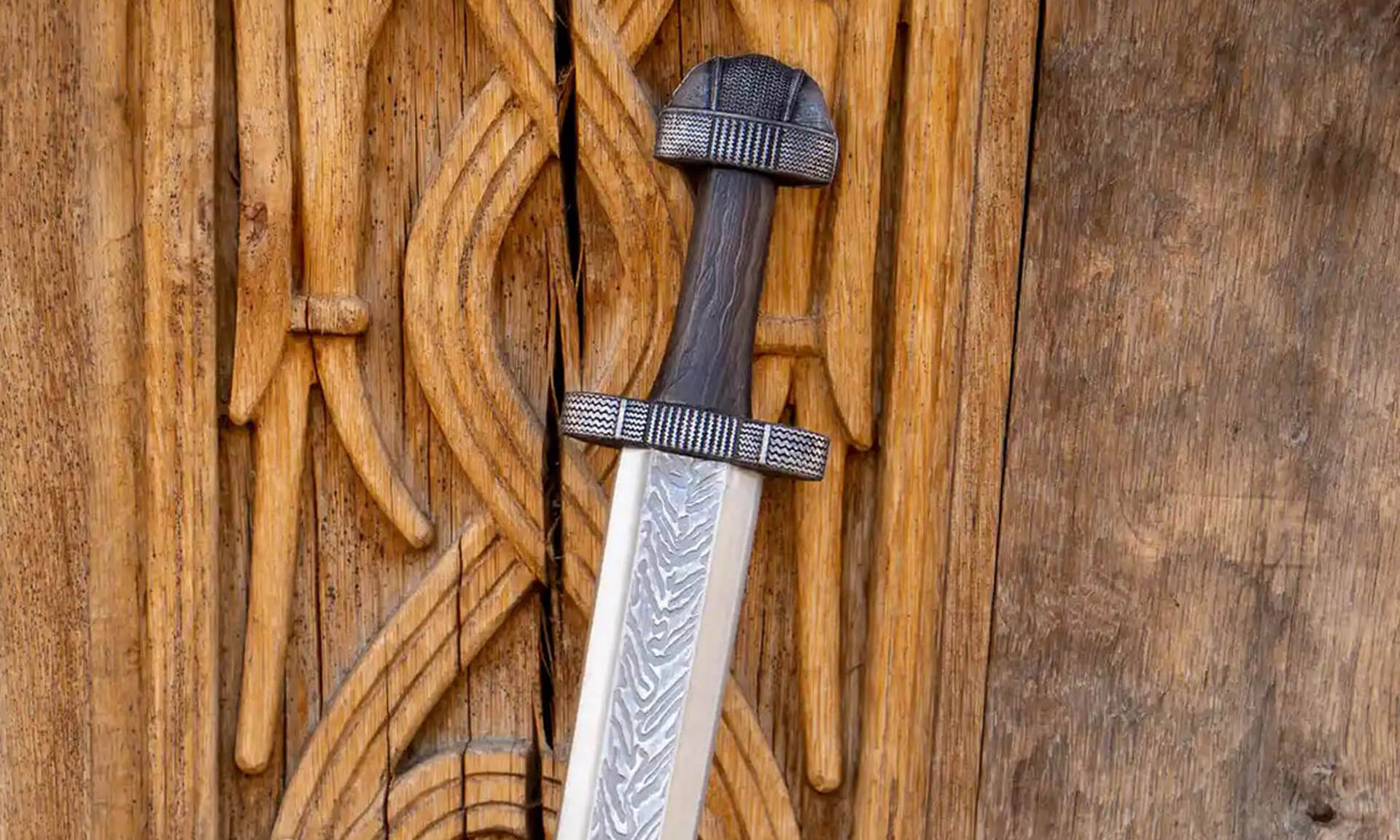 Upon a closer inspection of the Osted Sword, the central part of the blade glistens in the light as if demanding attention and awe. It is an arrow pattern that points towards the tip of the sword, constituting two bands of pattern welding – a technique where the smith folds iron and steel with differentiating carbon content to get the desired hardness and properties. The process also creates a distinct cosmetic effect in a flame-like pattern that most wealthy Vikings seem to have coveted. Pattern welding is an arduous technique and demands – today, as in the Viking Age – an exceptionally skilled artisan to master. A sword fit for a master collection!