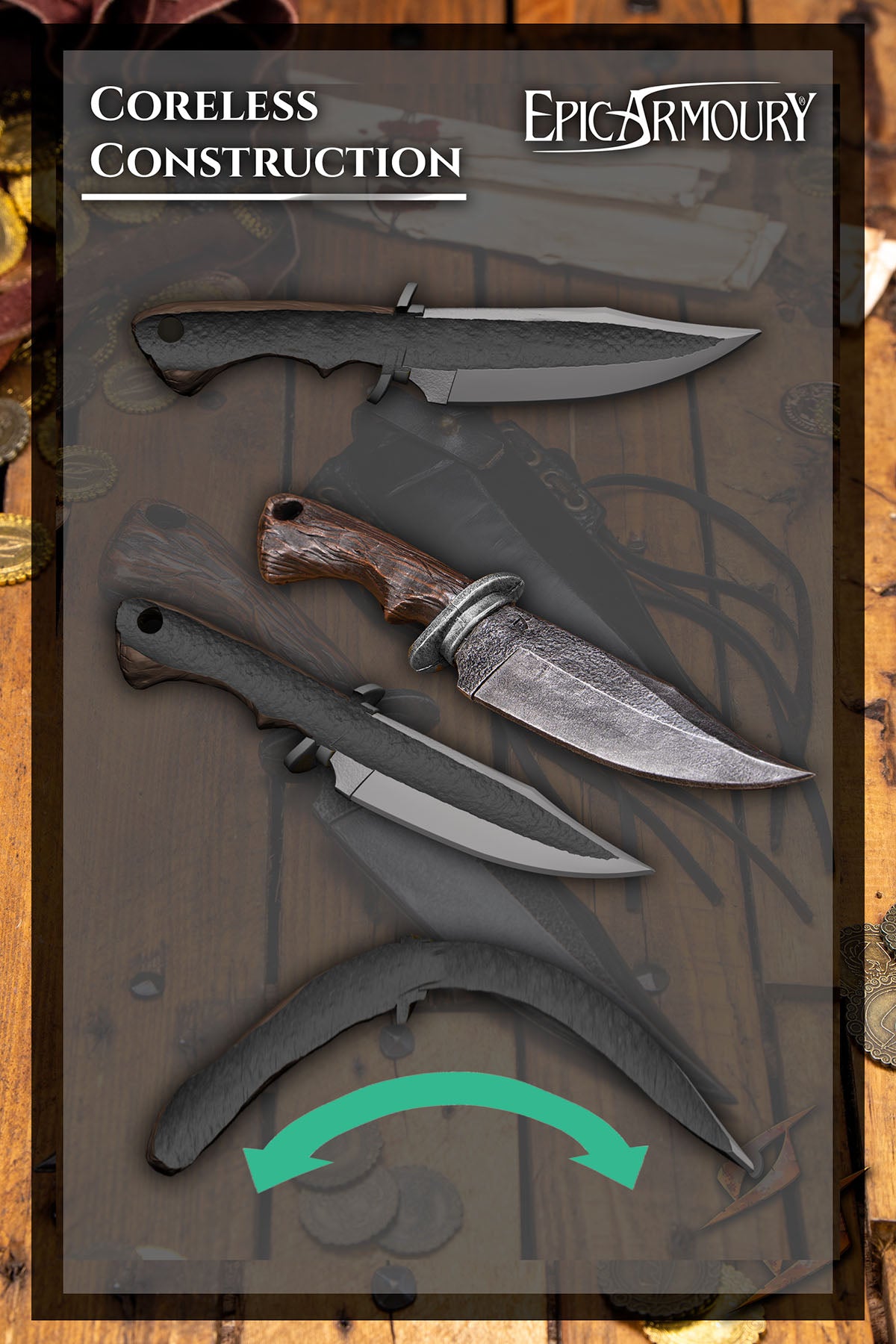 3. Flat Core: These cores aren’t often applied, but they have a stabilising effect on the overall structural integrity of smaller melee weapons. A good example is our Ranger Knife, available in both a flat-cored and coreless version, depending on whether it is meant as a close-range melee weapon or a throwing weapon.